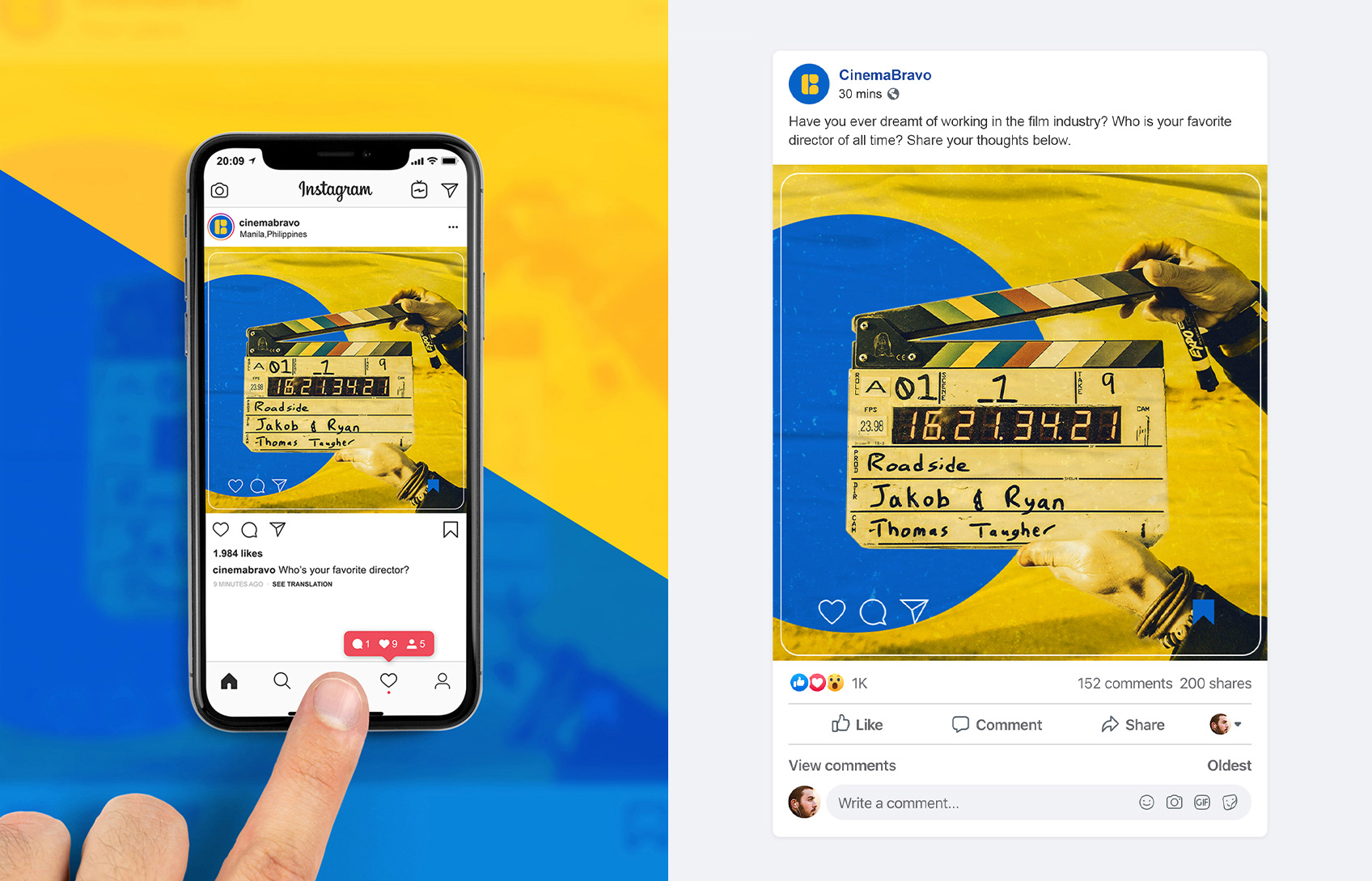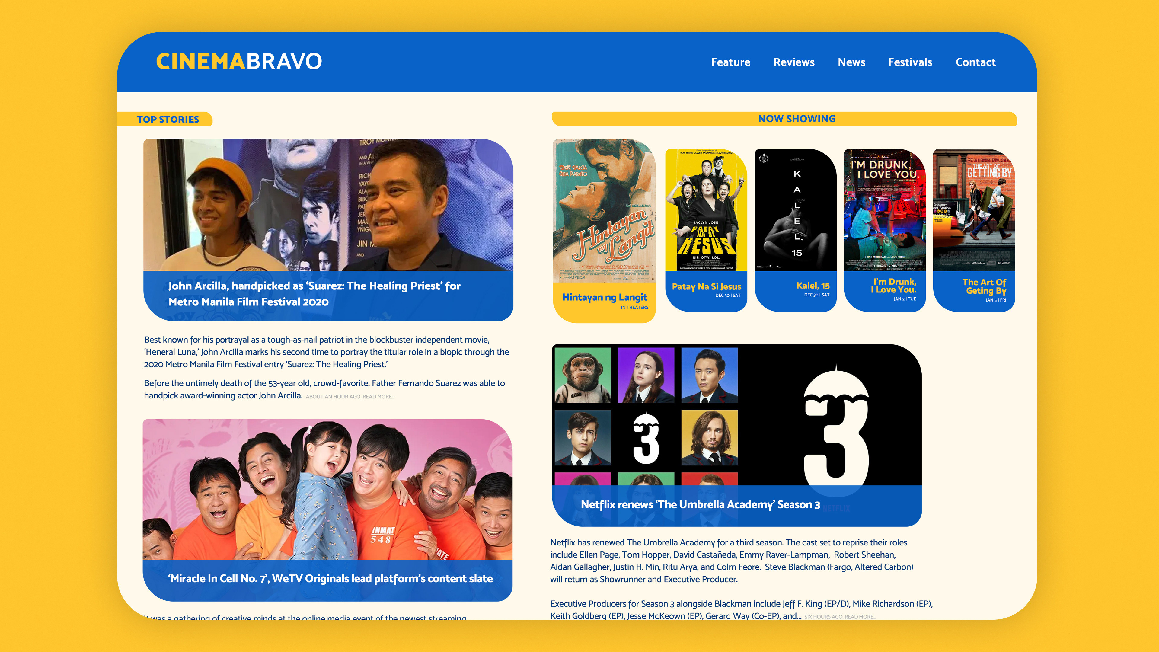 For years, CinemaBravo has been providing updates on films, television, music, and anything visual arts. By utilizing CinemaBravo's "C" and "B" initials, together with the radiant blue-yellow dyad, a fun, dynamic, and fresh identity has emerged, enhancing social media presence and allowing them to standout even more.